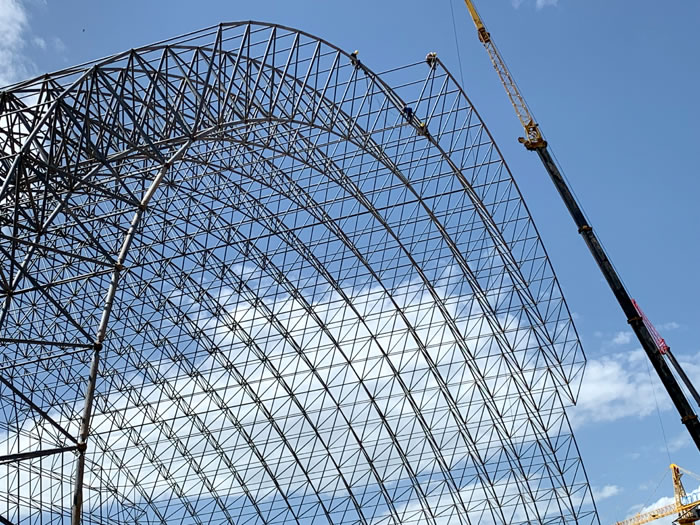 (2)网架加工前应对现场尺寸进行复测,确认无误后方可进行加工、安装;网架制作、运输、安装应遵守《空间网格结构技术规程》JGJ7-2010、《钢网架东莞螺栓球节点》JG/T 10-2009、《钢网架东莞螺栓球节点用高强度螺栓》 GB/T 16939-2016、《东莞钢结构东莞工程东莞施工规范》 GB50755-2012、《东莞钢结构东莞工程东莞施工质量验收标准》 GB50205-2020。